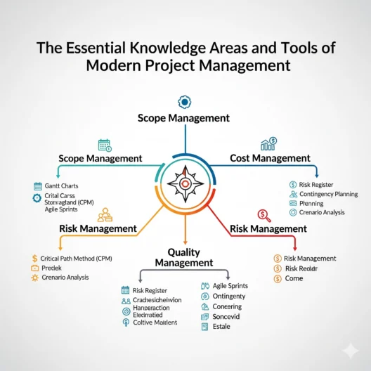 Modern project management operates within a structured framework that integrates multiple interconnected elements to ensure project success. This framework encompasses four critical pillars that work together to create a comprehensive management approach: project stakeholders, project management knowledge areas, tools and techniques, and the contribution of successful projects to the enterprise.