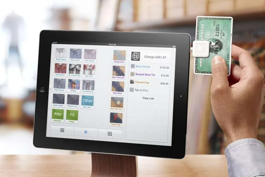 Retail store worker using a tablet for inventory management and payment processingfitsmallbusiness