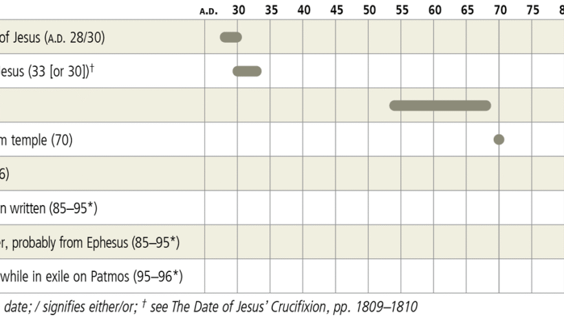 Early post-apostolic figures like Polycarp and Papias (c. a.d. 100) presuppose or cite 1 John in their writings. This suggests a date of composition no later than the 90s a.d. This dovetails with the testimony of church fathers that, shortly before a.d. 67, John joined other Christians in departing from Jerusalem prior to the destruction of the city by Rome. John reportedly resumed his apostolic ministry in the vicinity of the great but highly idolatrous city of Ephesus (in modern western Turkey). He likely wrote 1 John as an elder statesman of the faith in the last third of the first century, perhaps to churches in the surrounding region. This might have included towns like those mentioned alongside Ephesus in the opening chapters of Revelation: Smyrna, Pergamum, Thyatira, Sardis, Philadelphia, and Laodicea (Rev. 2:8–3:22).