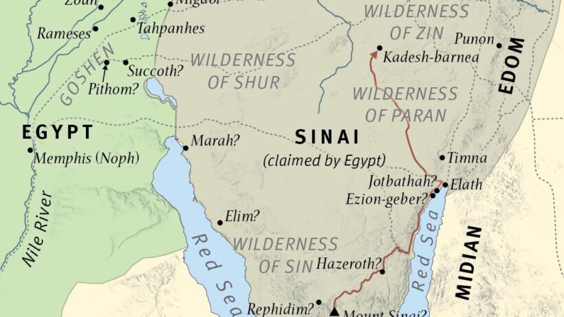 The book of Numbers details the Israelites’ experience in the wilderness as they journeyed from Mount Sinai to Canaan. As with the exodus, it is difficult to establish the exact route that the Israelites took, but it is generally believed that they headed east from Mount Sinai until they reached the Red Sea, where they turned northward to the top of the gulf and on to Kadesh-barnea.