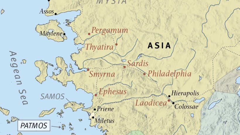 John addressed the book of Revelation “to the seven churches that are in Asia,” namely Ephesus, Smyrna, Pergamum, Thyatira, Sardis, Philadelphia, and Laodicea, although there were undoubtedly other churches elsewhere in the province of Asia (e.g., Miletus and Colossae, see Acts 20:17; Col. 1:2). John had apparently been exiled from Ephesus to the island of Patmos, southwest of Ephesus, and it was there that he recorded his visions.